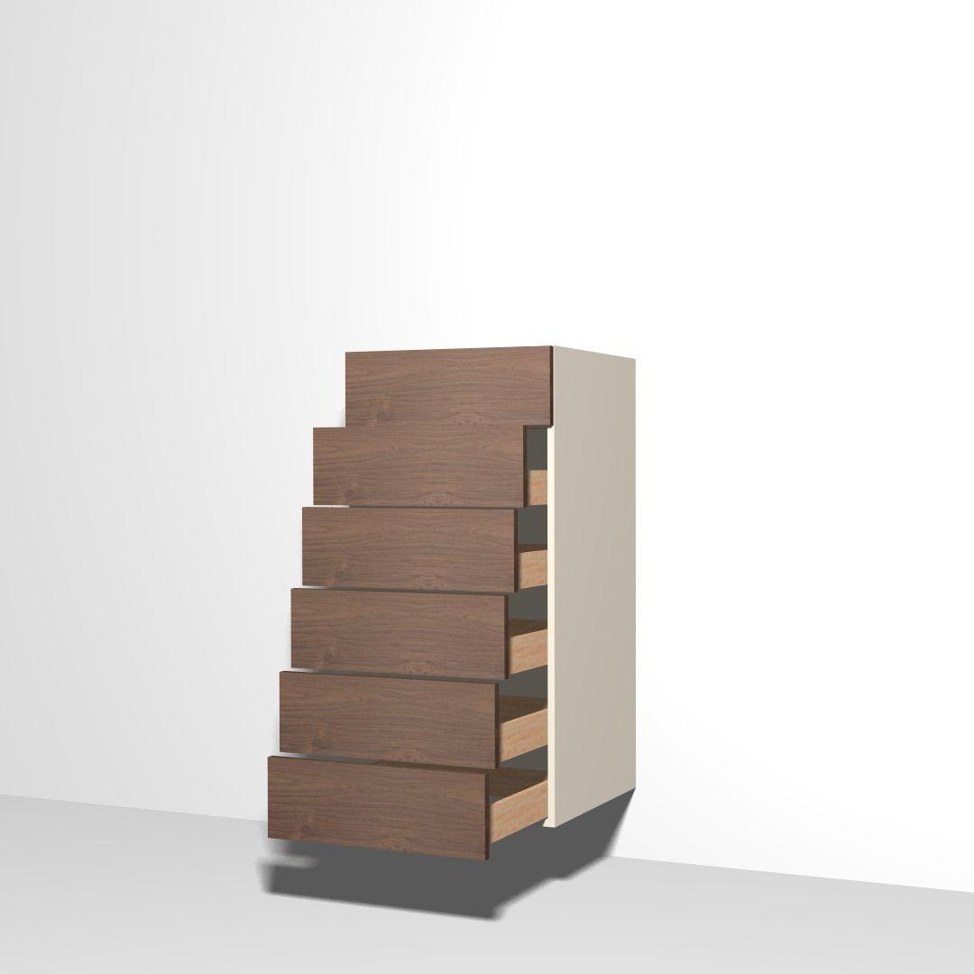 Anzahl der Schubladen überlegen und Schranktype wählen z.B. 5 Laden